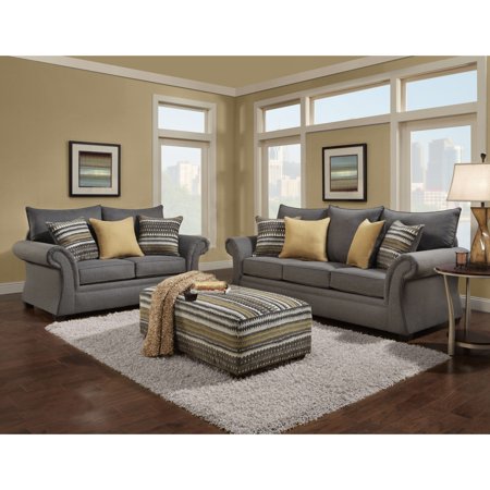 <ul> <li>Versatile solid pattern</li> <li>Set includes sofa, loveseat and ottoman</li> <li>Durable microfiber construction</li> </ul>