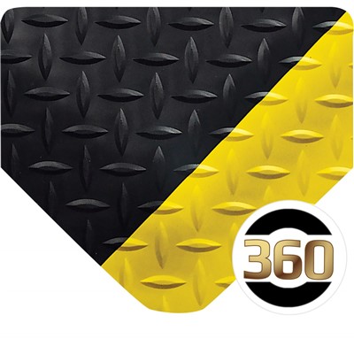 ANTI-FATIGUE MAT, BLACK/YELLOW, 15/16 IN X 49 FT X 4 FT, PVC, NITRILE-INFUSED SPONGE