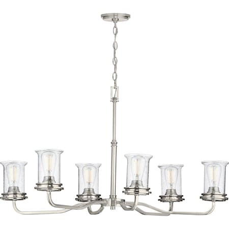 Progress Lighting Winslett Collection 6-Light Clear Seeded Glass Coastal Chandelier Light Brushed Nickel
