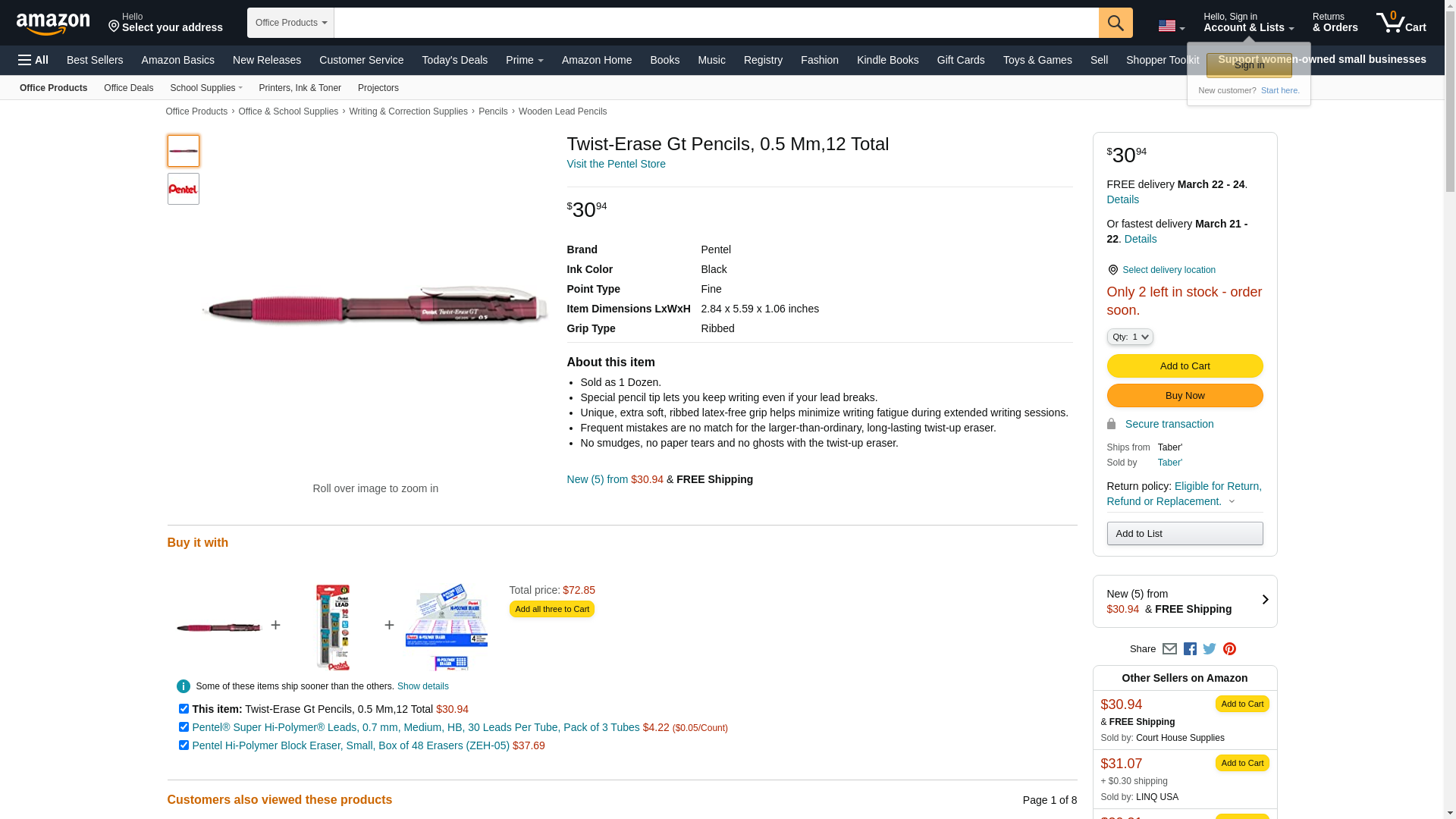 Special pencil tip lets you keep writing even if your lead breaks, while protecting pockets and purses when on the go. Unique, extra soft, ribbed latex-free grip helps minimize writing fatigue during extended writing sessions. Frequent mistakes are no match for the larger-than-ordinary, long-lasting twist-up eraser - it cleanly erases any mistakes - no smudges, no paper tears and no ghosts. Pre-loaded with 0.5mm Pentel Super Hi-Polymer HB lead, which produces fine lines, no sharpening required.