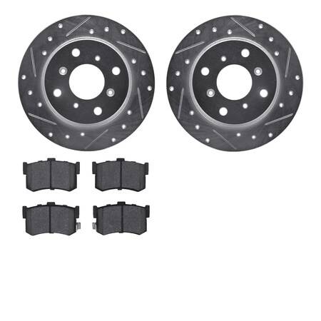 Dynamic Friction Company Rear Brake Rotors-Drilled and Slotted-Silver with 5000 Advanced Brake Pads 7502-59006