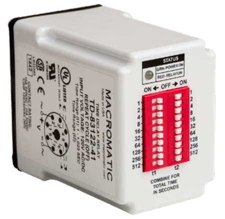 TD-83126-40 - Function - REPEAT CYCLE (OFF FIRST), Timing Range - 0.1 - 102.3 SEC., Input - 12VDC, Output - 10A DPDT