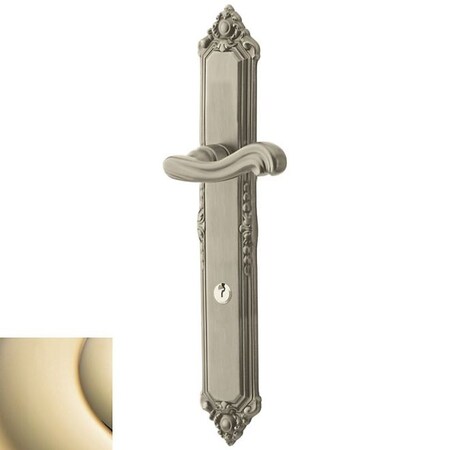 Kensington Series Multi Point Patio Trim with Profile Cylinder Below Handle and 92 mm Center to Center from the Estates Collection This is made specifically for multipoint doors and is a Trim Only. Product includes Interior and Exterior Trim with Lever and Cylinder (if Keyed Entry Function) Only. The Kensington Series Multi-point trim, as part of the Baldwin Estate Collection, is crafted with the finest of finishes and provides even more with its dexterity and elegant styling. Equipped with the detailed 5108 scroll-like metal lever, this elegantly designed intricate solid forged brass patio function handleset creates a sense of class and dignity that leave a lasting impression. The Kensington Series provides more than a beautiful floral design, as its function emulates form with its multi-point construction within the door to create an extra level of stability and security for an added peace of mind. Patio Function: Similar to a privacy function handleset where a door can be locked from the inside, the patio function adds another level of protection as there is no emergency release on the outside; which enables it to be used for egress applications. Most commonly used for patios and balconies that are not the primary entryways to your home, patio handlesets are a secure and convenient choice. Features: 5108 Scroll Lever Included Durable Solid Forged Brass Traditional Victorian Style Fits Doors 1-3/4" Thick Through-bolt Full Plate Mount Turn Knob Interior Locking Mechanism Covered by Baldwin Estate Limited Warranty Specifications: Center to Center from Cylinder to Lever: 3.625 Inches (92 mm) Mounting Holes Center to Center: 8.5 Inches Trim Width: 2.2" Trim Height: 12.7" Projection: 2.3" Door Thickness: 1-3/4" There are brand names, and then there is Baldwin. Constantly building and re-building upon a time tested legacy of superior design, craftsmanship, functionality and innovation, Baldwin Hardware has delivered mode