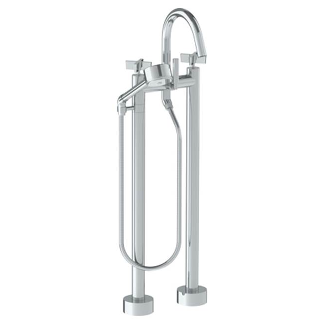 WATERMARK 37-8.3V-BL3-WH BLUE 36 1/4 INCH TWO HOLES FLOOR MOUNT GOOSENECK TUB FILLER WITH VOLUME HAND SHOWER, WHITE,...