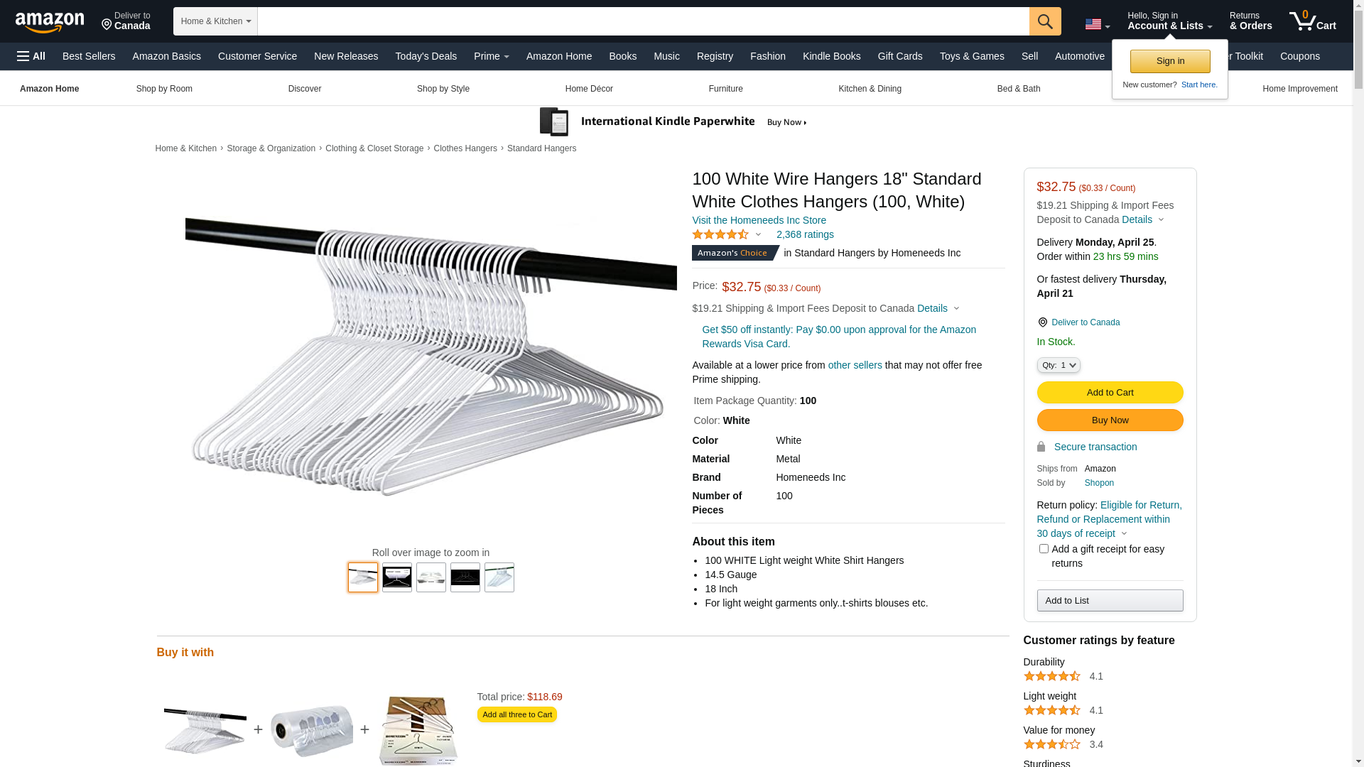 Homeneeds Metal 100 White Wire Hangers 18" Standard White Clothes Hangers (100, White)