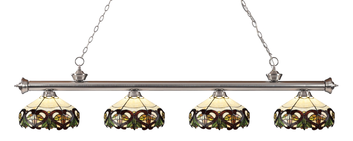 Z Lite 200-4BN-Z14-33 16 x 14 x 80 in. 100W Riviera Floral Trim 4 Light Billiard Light, Brushed Nickel & Multi Color