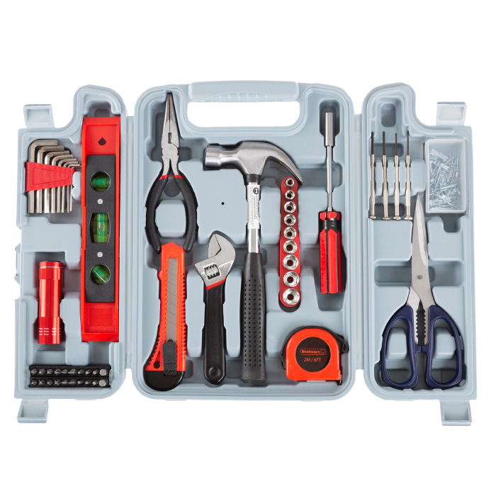 Stalwart Tool Kit - 131 Heat-Treated Pieces with Carrying Case - Essential Steel Hand Tool and Basic Repair Set for Apartments, Dorm, Homeowners