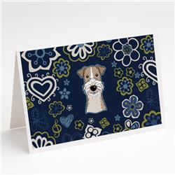 Carolines Treasures BB5098GCA7P Blue Flowers Wire Haired Fox Terrier Greeting Cards & Envelopes - Pack of 8