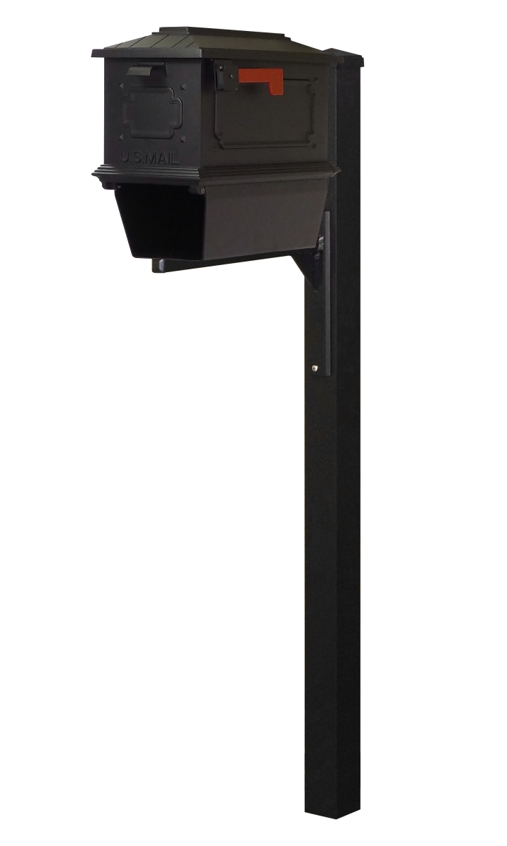 Special Lite Products SCK2017-SPK720-BLK Kingtson Curbside Mailbox with Newspaper Tube & Springfield Mailbox Post
