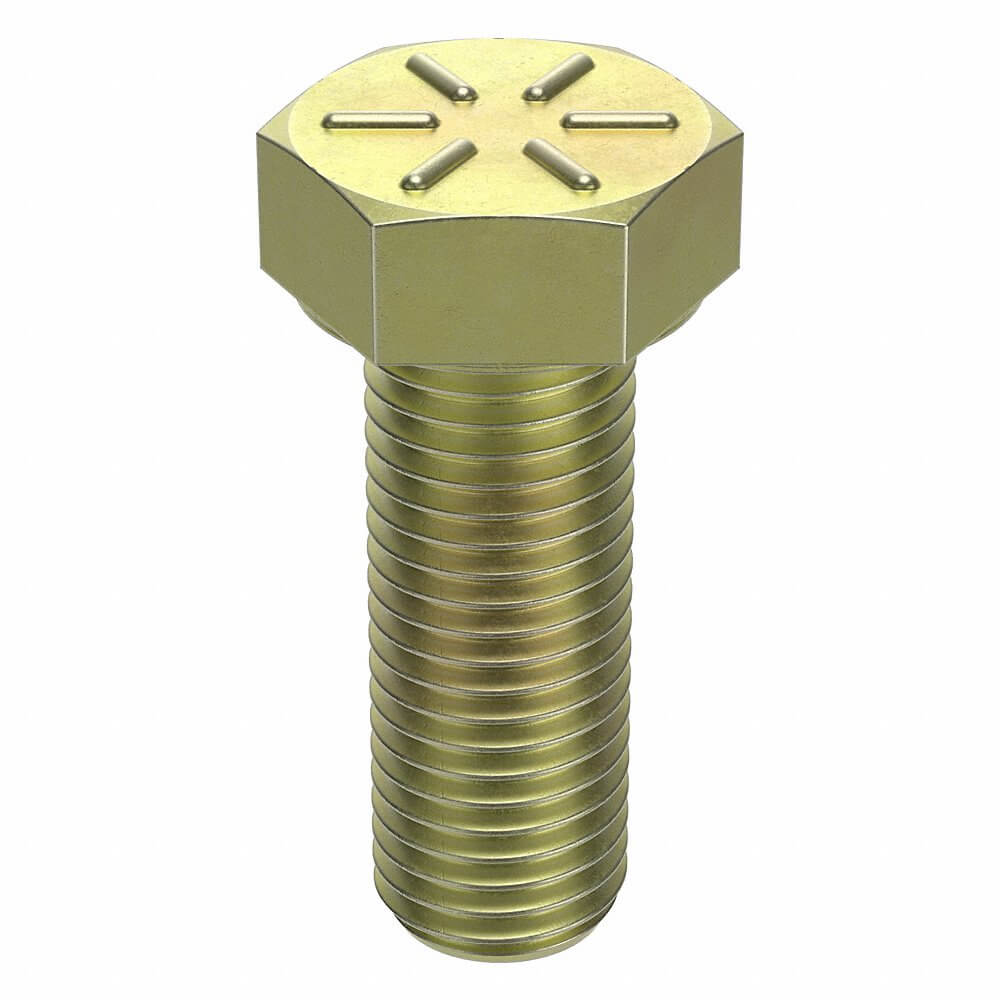 Hex Head Cap Screw, System of Measurement Inch, Basic Material Steel, Material Grade Grade 8, Fastener Finish Zinc Yellow, Dia./Thread Size 1 In.-8, Fastener Length 2 3/4 in, Fastener Thread Direction Right Hand, Fastener Thread Type UNC (Coarse), Fastener Thread Style Fully Threaded, Fastener Industry Standards ASME B18.2.1, Head Type Hex, Min. Thread Length 2 1/4 in, Head Height 39/64 in, Head Width 1 1/2 in, Package Quantity 25