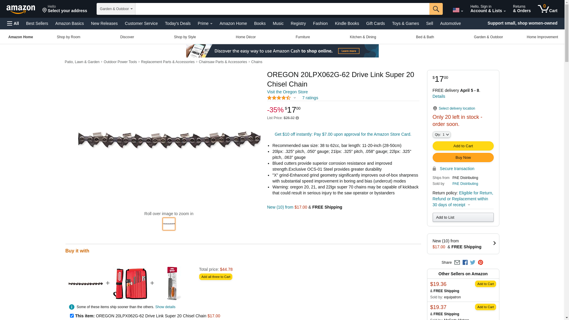 10 Pack PowerCut Saw Chain, 16"<br>Description The Oregon PowerCut 20LPX062G Saw Chain is an ideal choice for professional woodcutters using .325" pitch saws. For 16" barsthis .050" gauge saw chain has 62 drive links. This chain has low-vibrationfull chisel cutters which offer top performance. Offset depth gauges prevent cutters from driving into the sidewall of the cut for a smoother cut. The 20LPX062G saw chain fits several Stihl saws including MS 250MS230and MS 251. See the Fit Guide for a complete list.<br>Details Pitch: .325" gauge: .050" drive link count: 62 LubriTec keeps your chain and guide bar oiled for less friction and longer life Blued Cutters deliver high-quality protection against corrosion Top-Plate Filing Indicators make accurate sharpening easier Exclusive OCS-01 Steel provides greater durability For saw sizes 38-62 cc <br>Fits Models Stihl 021 Stihl 025 Stihl 025C Stihl 70 Stihl MS 230 Stihl MS 230 C Stihl MS 230 C-BE Stihl MS 241 C-M Stihl MS 250 Stihl MS 250 C Stihl MS 250 C-BE Stihl MS 251 Stihl MS 251 C Stihl MS 251 C-BE <br>Replaces OEM Husqvarna H23-62 Stihl 23RS362E <br>Specs Product UOM Each Weight (with Packaging) 0.587 Lb Product Family PowerCut Pitch .325" Chain Type 20LPX Gauge .050" Drive Links 62 Bar Length 16" Chain Low Kickback (ANSI) Narrow Kerf No File Size 3/16" Package Type Loop