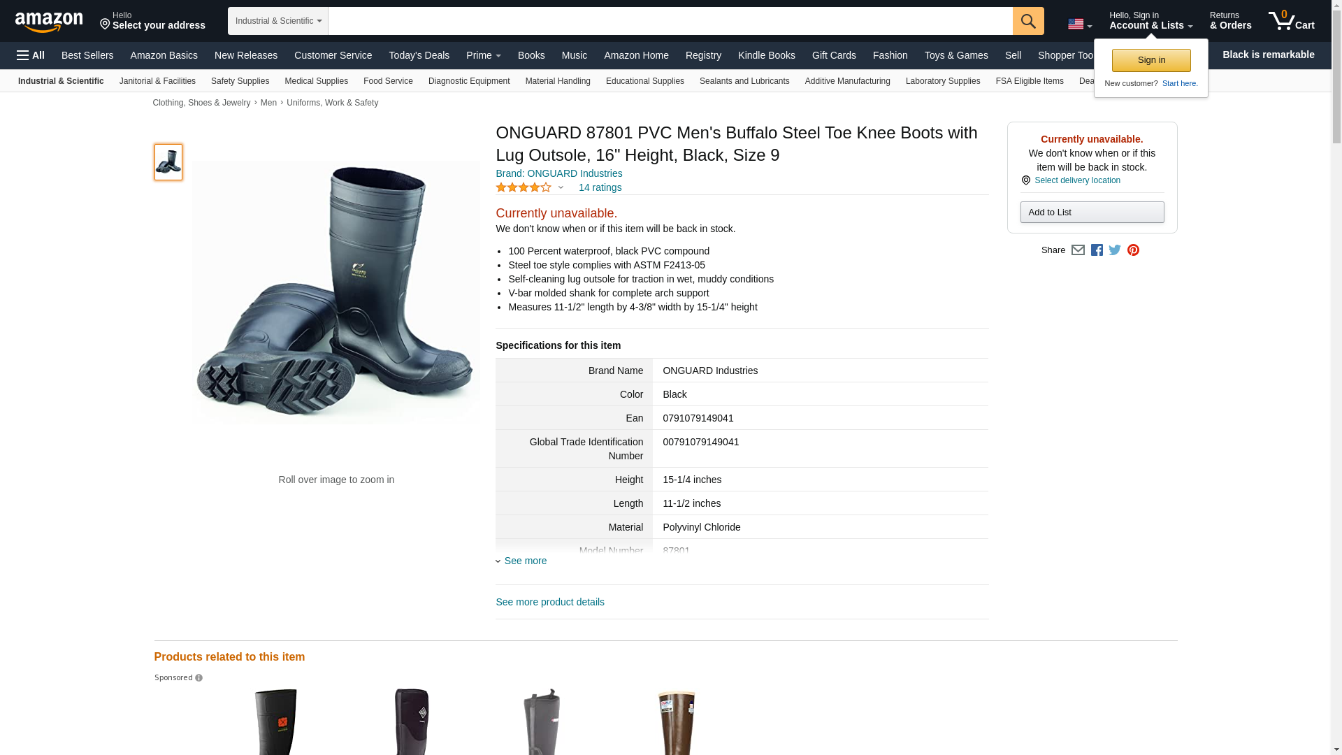 ONGUARD 87801 PVC Men\'s Buffalo Steel Toe Knee Boots with Lug Outsole, 16" Height, Black, Size 9