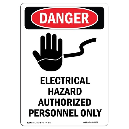 OSHA Danger Sign, Electrical Hazard Authorized, 7in X 5in Decal