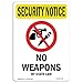 OSHA SECURITY NOTICE Sign - No Weapons By State Law With Symbol | Choose from: Aluminum, Rigid Plastic or Vinyl Label Decal | Protect Your Business, Work Site, Warehouse & Shop Area | Made in the USA
