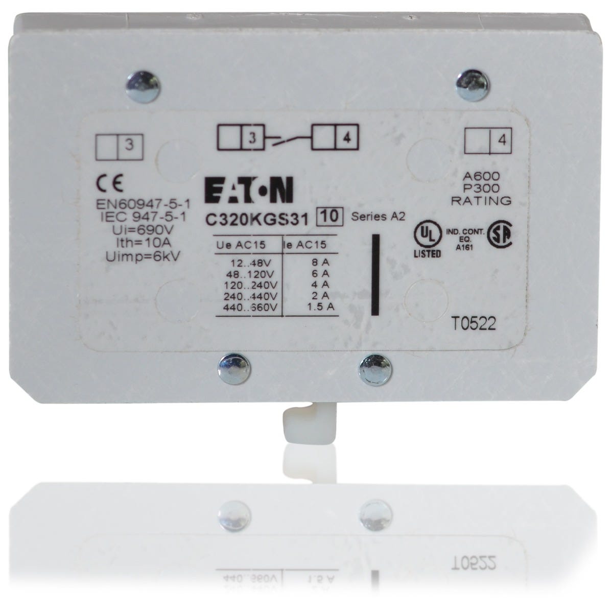 CUTLER HAMMER C320KGS31 1NO, 660 VAC, for USE W/Starters and CONTACTORS, Base Mount, 1.5/8 AMP, Auxiliary Contact, Screw Termination, DIN Rail Mount