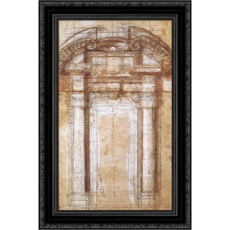 Study for the Porta Pia (a gate in the Aurelian Walls of Rome) 19x24 Black Ornate Wood Framed Canvas Art by Michelangelo