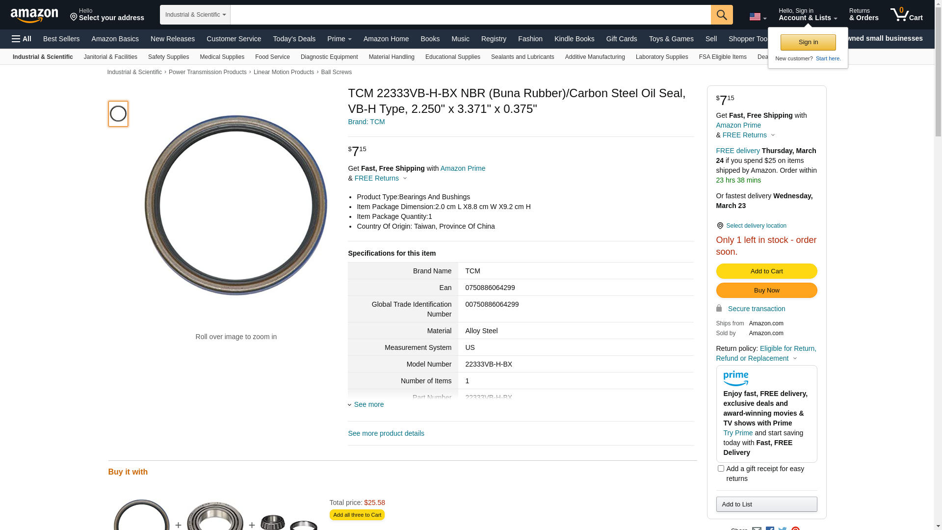 TCM 22333VB-H-BX NBR (Buna Rubber)/Carbon Steel Oil Seal, VB-H Type, 2.250" x 3.371" x 0.375"