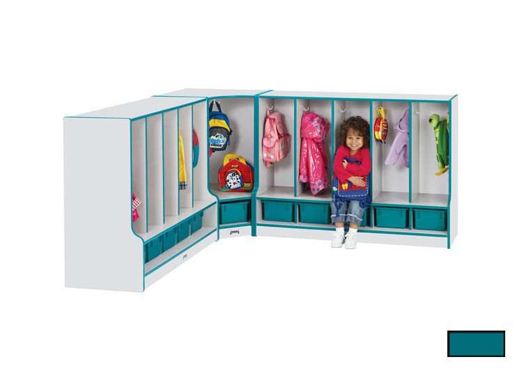 Rainbow Accents 6683JCWW005 Toddler Corner Coat Locker with Step and Trays, Teal