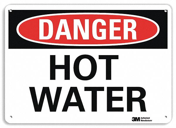 Danger Sign, Vertical Rectangle, Number of Printed Sides 1, English, Sign Format Traditional OSHA, Sign Legend Hot Water, Sign Legend Background Color White, Sign Legend Style Text