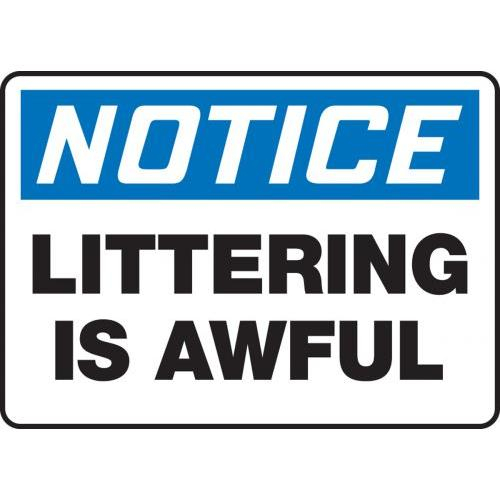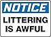 NOTICE LITTERING IS AWFUL 10" x 14" Dura Fiberglass Sign