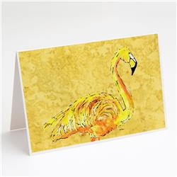 Carolines Treasures 8872GCA7P Flamingo on Yellow Greeting Cards & Envelopes - Pack of 8