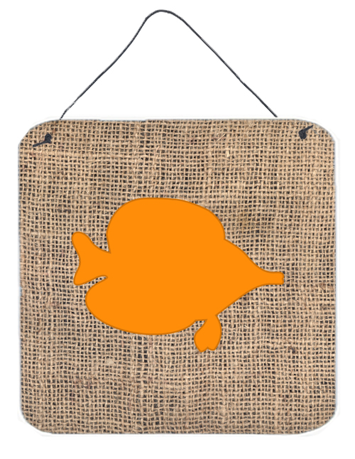 Caroline's Treasures BB1023-BL-OR-DS66 Fish - Tang Fish Burlap and Orange BB1023 Wall or Door Hanging Prints Aluminum Metal Sign Kitchen Wall Bar Bathroom Plaque Home Decor, 6x6, Multicolor