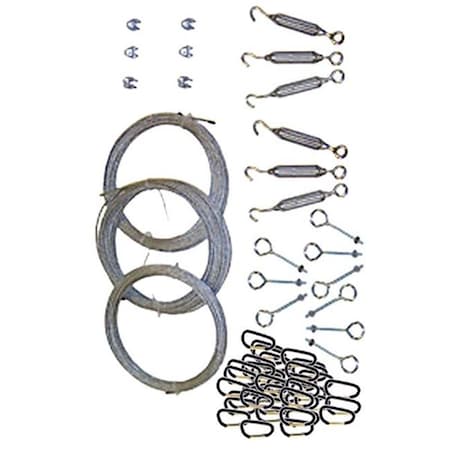 A perfect start for a build-it-yourself batting cage. Use our cable kits to suspend the net from your own custom frame, or to create an indoor net suspension system wall-to-wall. Each kit comes with: 3 cut-to-length cables. 6 turnbuckles. 6 small u-bolts. The 55'kit comes with 42 carabiners.