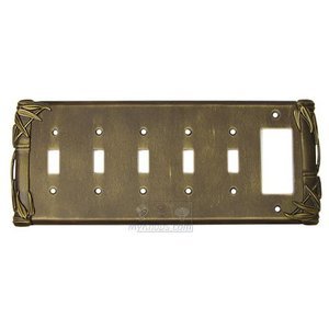Bamboo Collection - Bamboo Switchplate Combo Rocker/GFI Five Gang Toggle Switchplate in Pewter with Verde Wash by Anne at Home - 5018BB-134 | MyKnobs
