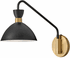 Lark Simon 8-in Single Light Plug-in Wall Sconce - Metal Shade, Articulating Arm, Hidden Mounting Hardware, On/Off Switch - Matte Black + Heritage Brass