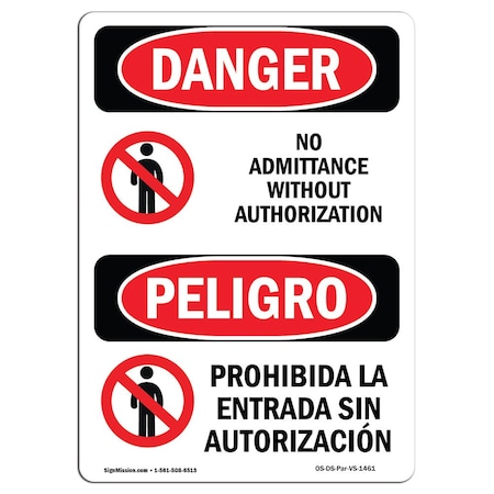 OSHA Danger, No Admittance Authorization Bilingual, 24in X 18in Decal
