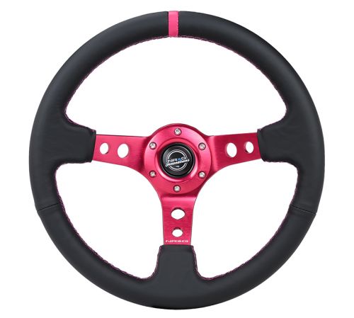 Buy NRG Reinforced Steering Wheel (350mm/3in. Deep) Black Leather/ Fushia Center Mark/ Fushia Stitching - RST-006FH for 107.12 at Armageddon Turbo & Performance