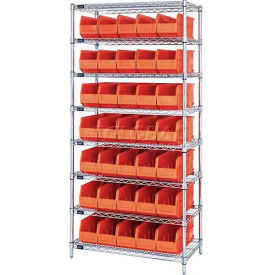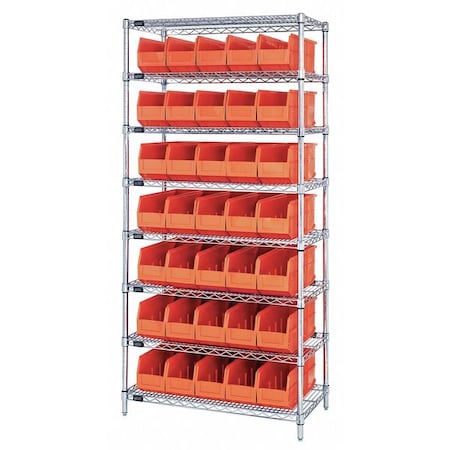 Quantum Storage Open Wire Shelving, 8Shelves, 35Bin, Org - WR8-441OR