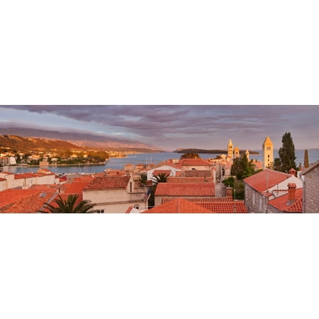 Panoramic Images Stretched Canvas Art - Old town of Rab town at sunset, Island of Rab, Kvarner Region, Dalmatia, Croatia - Large 36 x 12 inch Wall Art Decor Size.