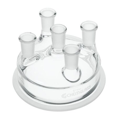 Chemglass CG-1946-04 Series CG-1946 Five Neck Reaction Vessel Lid with 150 mm Duran Flange, 45/50 Center Neck, 4-24/40 Side Necks