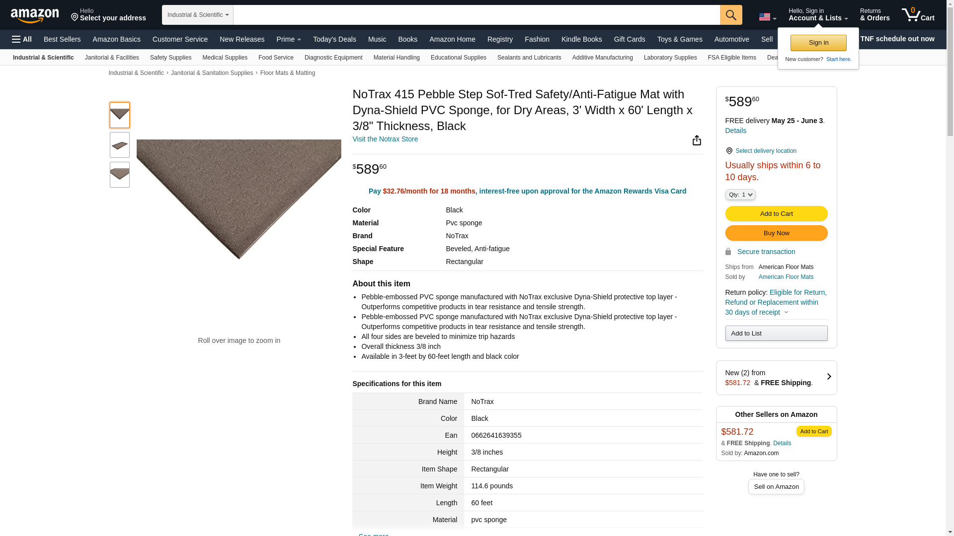 Airgas - S57415R0036BL - Superior Manufacturing 3' X 60' Black Dyna-Shield? PVC Sponge NoTrax? Pebble Step Sof-Tred? Anti-Fatigue Floor Mat
