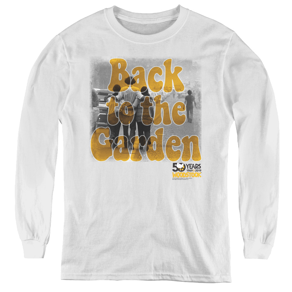 Trevco WOOD148-YL-2 Woodstock 50 Years Dove Print Youth Long Sleeve T-Shirt, White - Medium