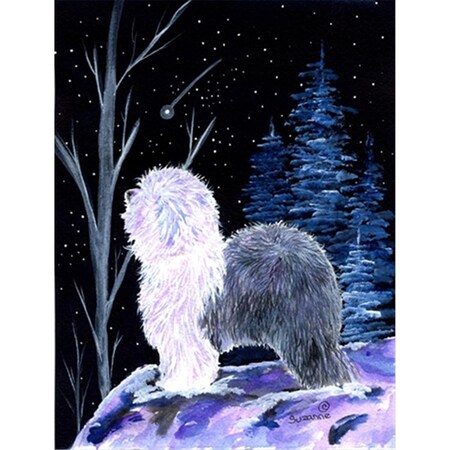 Starry Night Old English Sheepdog Canvas Flag - House Size, 28 x 40 in.