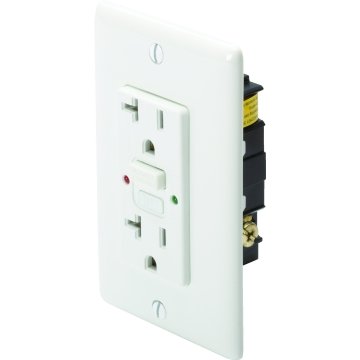 - <b>Price For:</b> Each <b>Power Indicator</b>: Yes <b>HP</b>: 1.0 <b>Wiring Method</b>: Back and Side <b>Color</b>: white <b>Standards</b>: UL listed, CSA certified <b>Voltage</b>: 125VAC <b>Application Environment</b>: Industrial Environments <b>Special Features</b>: Ground Fault Indicator <b>Surge Suppression</b>: No <b>Reset Type</b>: Automatic <b>Self-Testing</b>: Yes <b>NEMA Configuration</b>: 5-20R <b>Tamper Resistant</b>: Yes <b>Mounting Type</b>: Flush