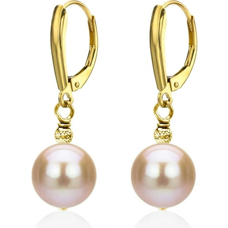 14Kt Yellow gold 6-7mm Pink Freshwater Pearl with Pyramid Beads/Shield Lever Back Earring