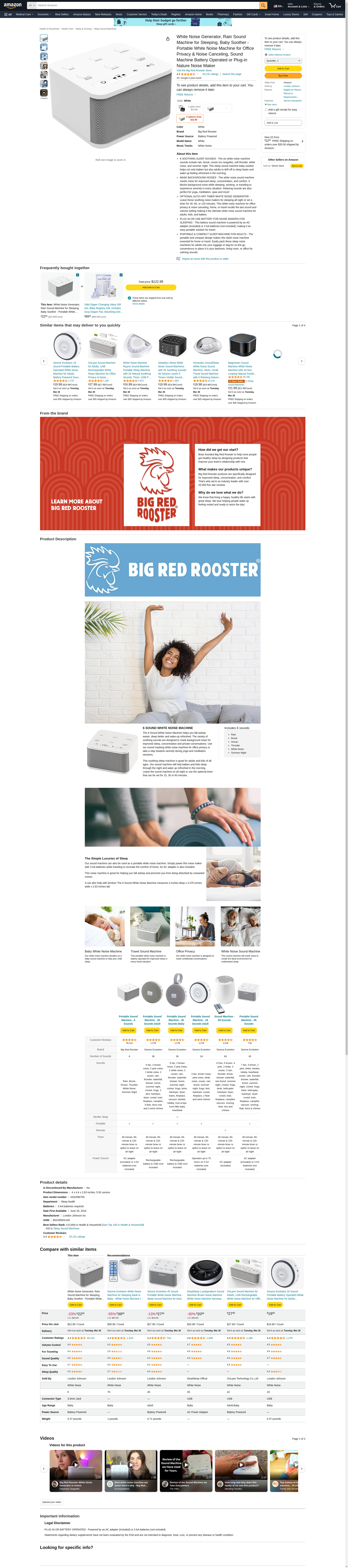 Big Red Rooster 6 Sound White Noise Machine | Sound Machine for Sleeping | Portable White Noise Machine for Office Privacy | Travel Sound Machine Baby | Plug in Or Battery Operated: Maxedbuy.com