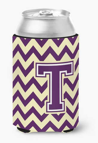 Carolines Treasures CJ1058-TCC Letter T Chevron Purple & Gold Can or Bottle Hugger, 0.25 x 4 x 5.5 in.