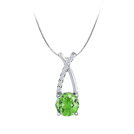 Fine Jewelry Vault UBNPD32421W14CZPR7 14K White Gold CZ Peridot Pendant Semi Infinity Design, 7 Stones
