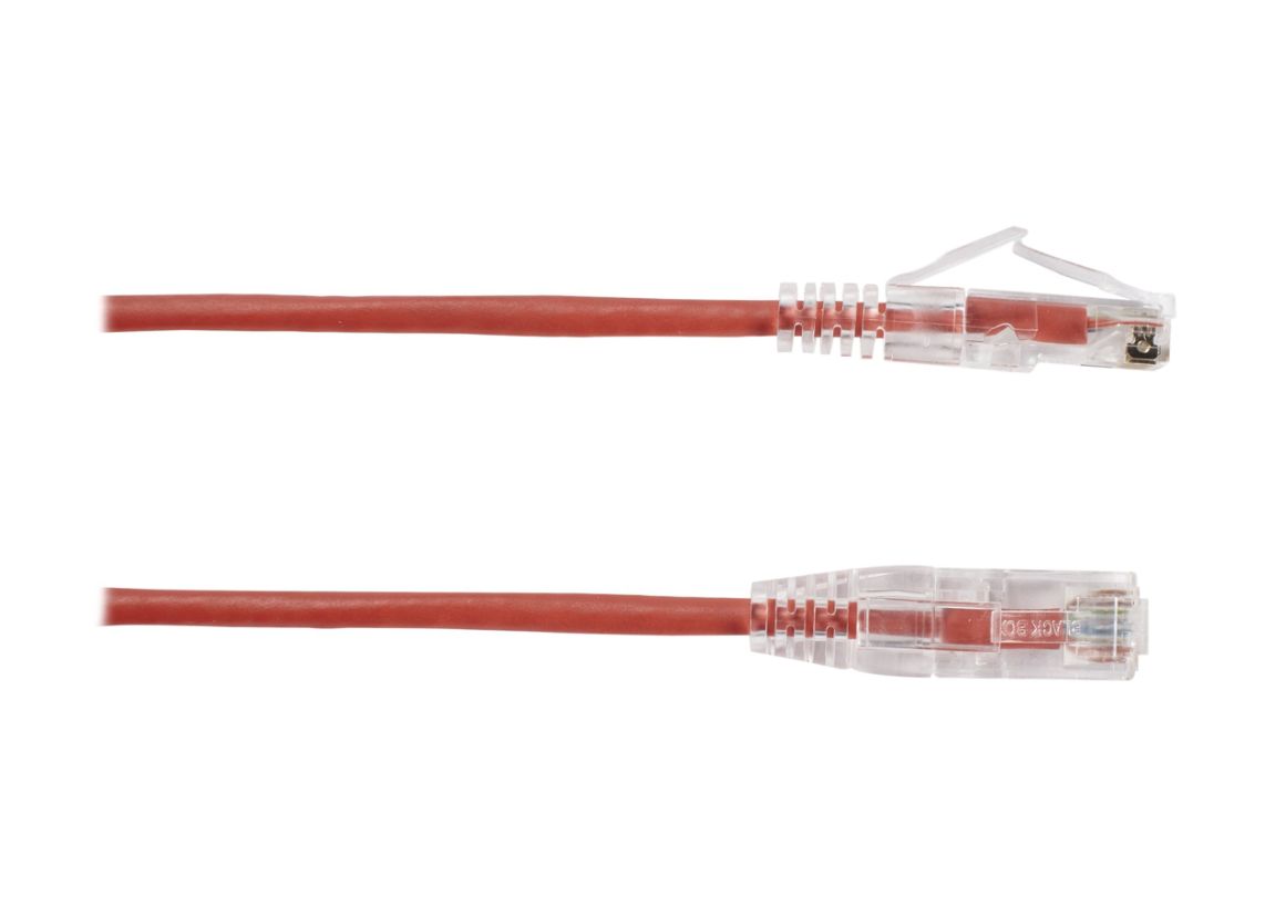 BlackBox, C6APC28-RD-07, Slim-Net 28 AWG 500 MHz Patch Cable (UTP), Red, 7 ft. CAT6A Slim 28 AWG 500-MHz Stranded Ethernet Patch Cable - Unshielded, PVC, Snagless Boot, RJ-45, Red, 7-ft. Slim fit. 28-AWG Ethernet patch cables save space and reduce clutter in crowded telecom rooms and high-density data centers. With a diameter of only .161", this 28-AWG cable is almost half the size of a typical 24-AWG cable. When you calculate the physical cable area in bundles and in patching connections, you'll actually save more than 50% space when compared to traditional cables. Easier cable handling. Because there's more space between patched 28-AWG cables, there's more space for fingers when doing installs and MACs. A side benefit is improved air flow and port visibility. Reduce cable management. Because 28-AWG cables have a reduced footprint and increased flexibility, you can easily route cables without a cable manager. And you can gain 50% or more space in vertical cable managers. Conserve rack space. A major benefit of using 28-AWG cables is the ability to put more cables in high-density 1U or 2U patch panels freeing up valuable rack units. You can also eliminate or reduce the number of horizontal cable managers, freeing up even more space. Big performance in a small cable. Black Box 28-AWG cable conforms to all performance standards and passes channel testing. You can be assured of guaranteed-for-life performance. Features Save space in crowded telecom rooms and data centers. Reduce clutter in high-density cabinets and racks. Guaranteed for life!