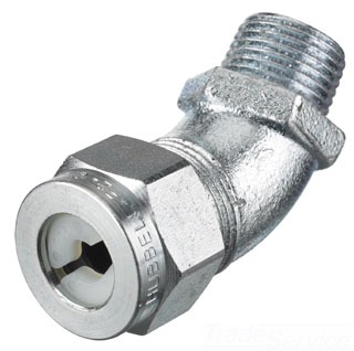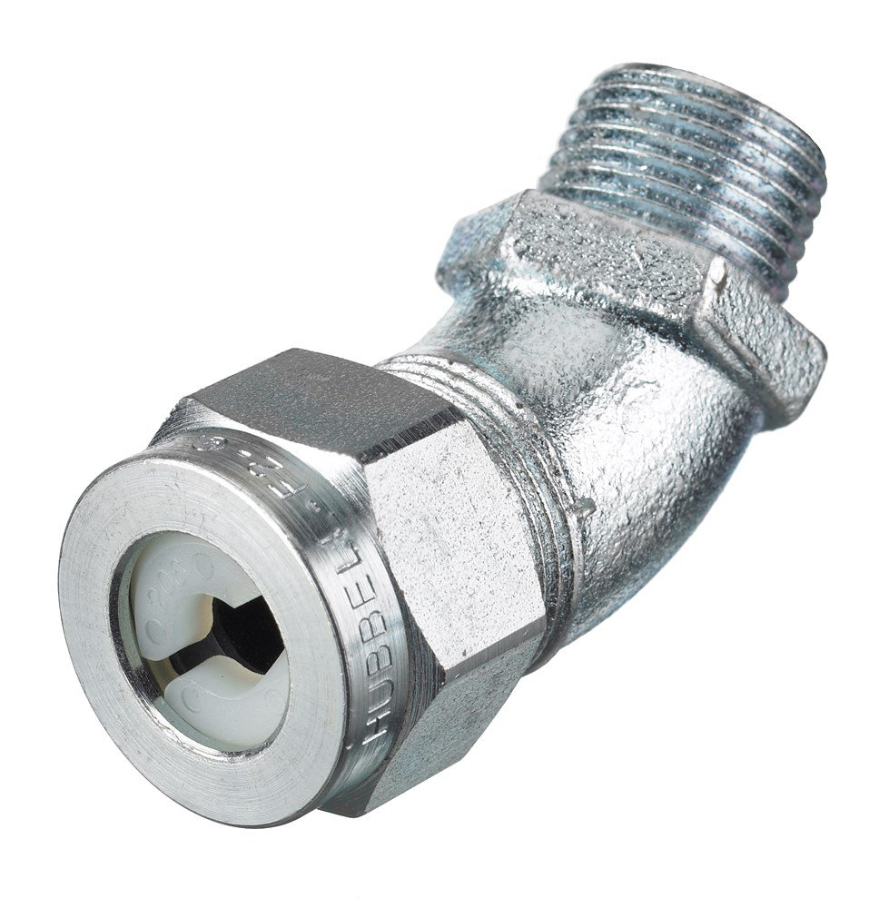 Hubbell VHC1022ZP Kellems Wire Management Cord Connectors, 45 Degree Male, Steel, 1/2" Hub, 0.25-0.38" Diameter