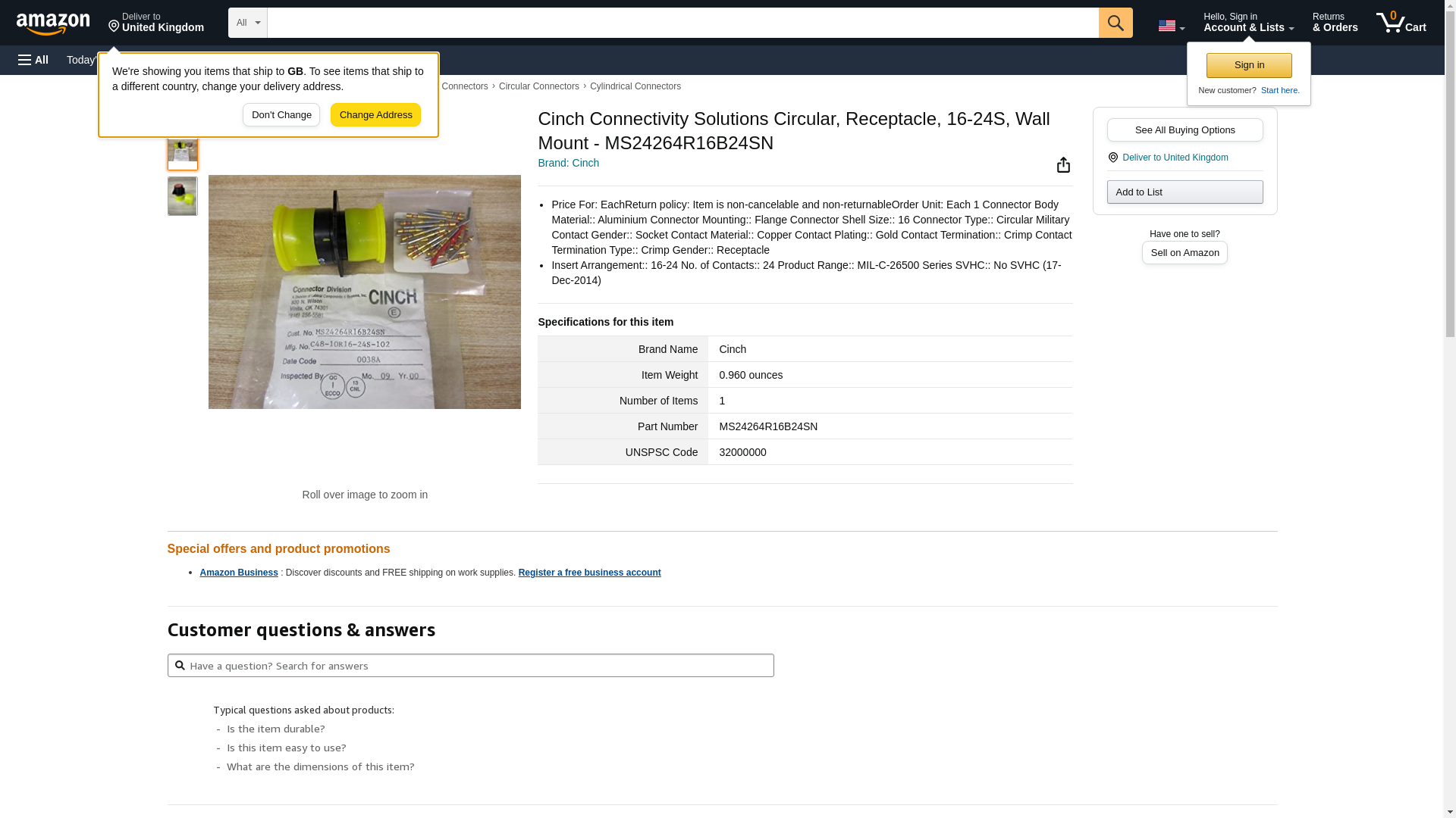 - <b>Price For:</b> Each<b>Return policy:</b> Item is non-cancelable and non-returnable<b>Order Unit:</b> Each 1 <b>Connector Body Material:</b>: Aluminium <b>Connector Mounting:</b>: Flange <b>Connector Shell Size:</b>: 16 <b>Connector Type:</b>: Circular Military <b>Contact Gender:</b>: Socket <b>Contact Material:</b>: Copper <b>Contact Plating:</b>: Gold <b>Contact Termination:</b>: Crimp <b>Contact Termination Type:</b>: Crimp <b>Gender:</b>: Receptacle