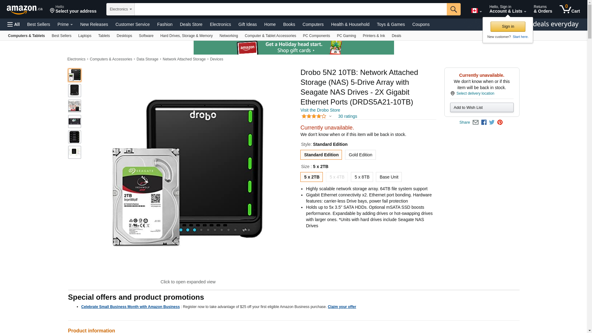 Drobo 5N2 2TB: Network Attached Storage (NAS) 5-Drive Array with Seagate NAS Drives - 2X Gigabit Ethernet Ports (DRDS5A21-2TB)