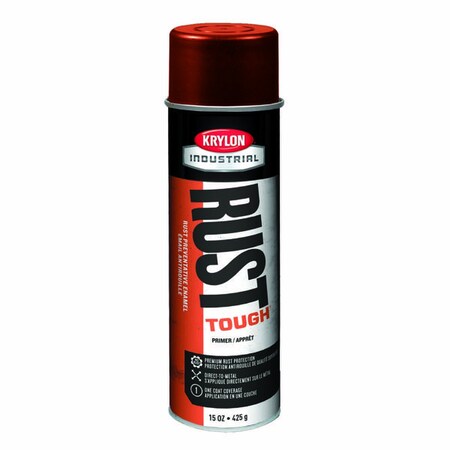 'Spray Primer, Rust Tough, Red, Net Weight 15 oz., Flat Paint and Primer Finish, Dry Time 25 min, Coverage 25 sq. ft., Paint and Primer Surface Material Metal, Steel, Wood, Resin Type Acrylic Alkyd Enamel, Solvent Base Type, Application Temperature 50 Degrees to 85 Degrees F, Dry Time Tack Free 1 hr., Dry Time Recoat 2 hr., Interior/Exterior, Features EZ Touch Fanspray Nozzle, Standards MIR Compliant'