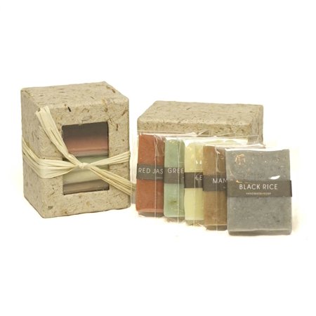 Soaps hand made in Thailand. Elegantly styled as mints in their own envelope. Flavors include: Black Rice, Red Jasmine Rice, Seaweed, Mangosteen, Lemongrass, Kaffir Lime, Mango, Orange Spice, Coconut, Ylang Ylang, Tamarind, Tea, Ginger, Lavender, Jasmin Rice. 5 in. L x 4 in. W x 4 in. H (6 lbs).