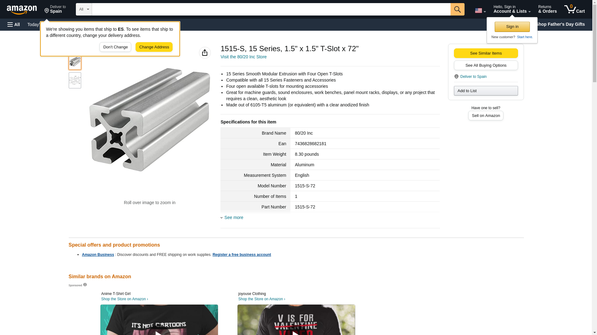 80/20 1515-S-72 | Extrusion T-slot 15s 72 Inch Length 1.5 Inch Width | 16U251 | Raptor Supplies Worldwide