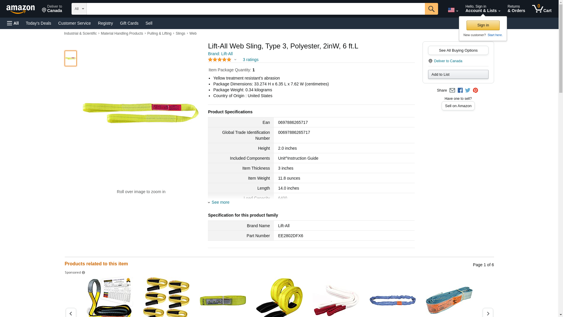 Brand Lift-All Web Sling, Type 3, Polyester, 2inW, 6 ft.L, Pack of 3